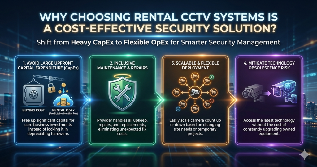 For short-term projects or seasonal operations, purchasing CCTV systems can be financially inefficient. Rental systems allow organizations to deploy cameras only when needed, avoiding idle equipment and minimizing unnecessary expenditure.