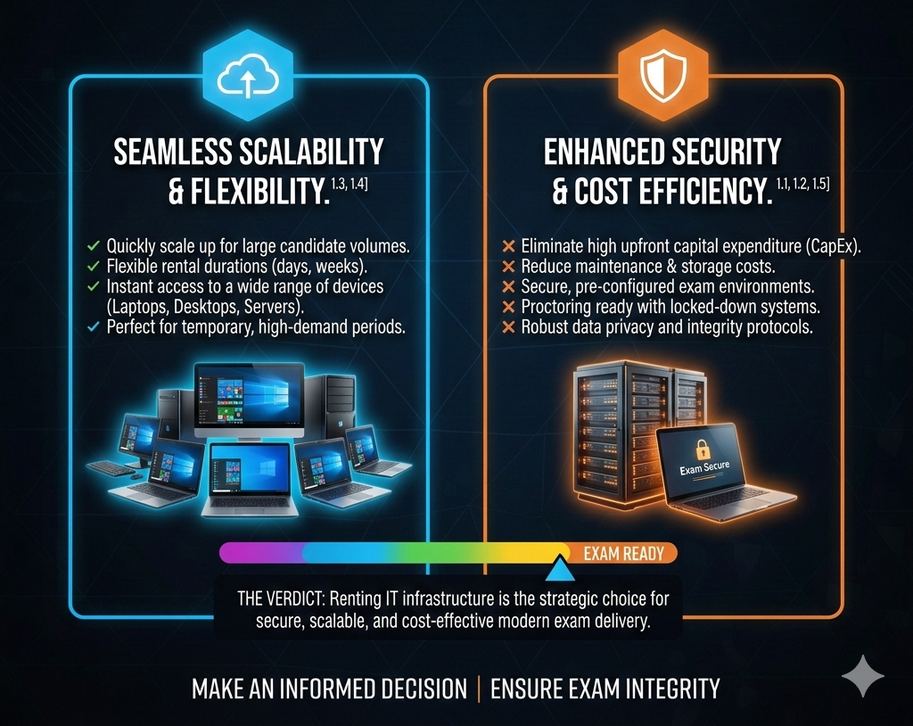 As digital examinations continue to expand across academic and professional sectors, institutions must adopt infrastructure strategies that are cost-effective, scalable, and reliable. Owning large volumes of IT hardware may seem like a long-term investment, but for exam-centric use cases, it often leads to underutilization, maintenance challenges, and financial strain.